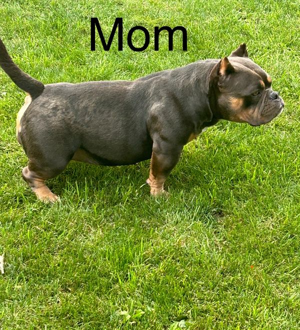 female mini micro bully with papers. White,brown and black coat. The biggest out of the pack of bullies selling for $2000